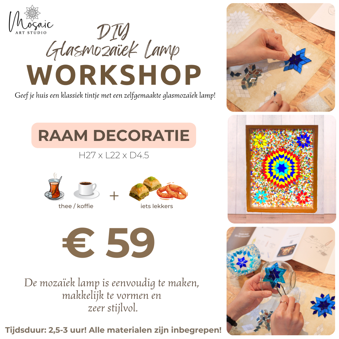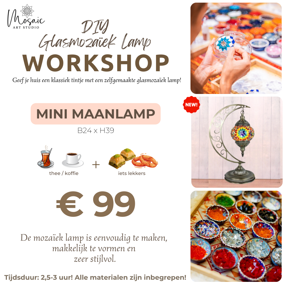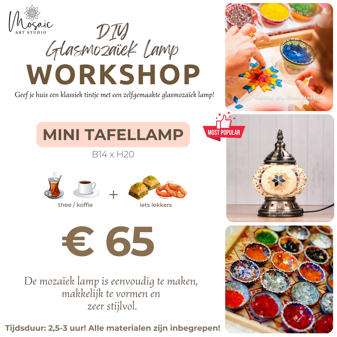 Creëer je unieke lamp in onze workshops. Ontdek eindeloze creativiteit en vorm prachtige mozaïekkunst.