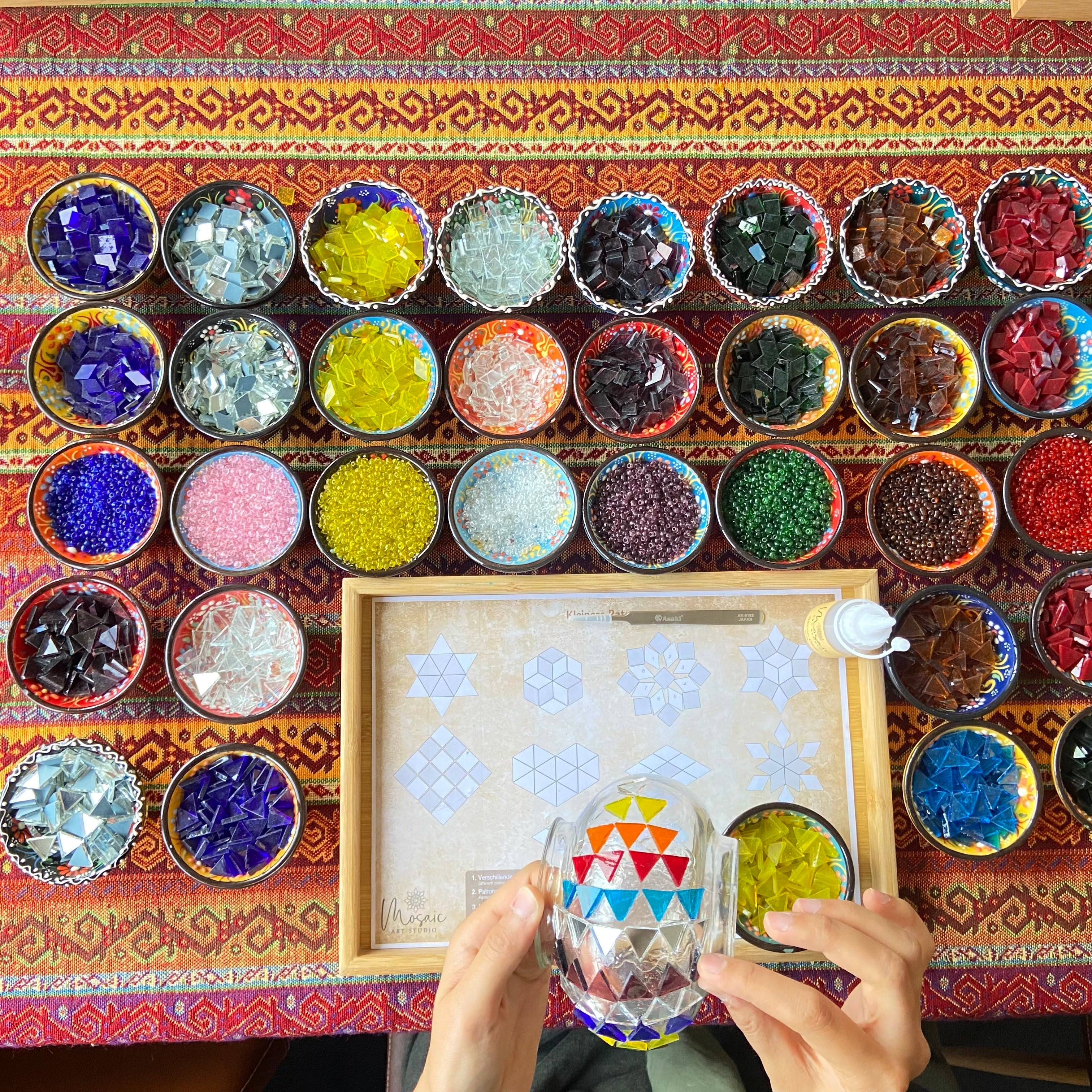 Doe mee aan workshops voor beginners met deskundige begeleiding. Duik moeiteloos in de wereld van mozaïekkunst, zonder dat er voorafgaande vaardigheden nodig zijn.