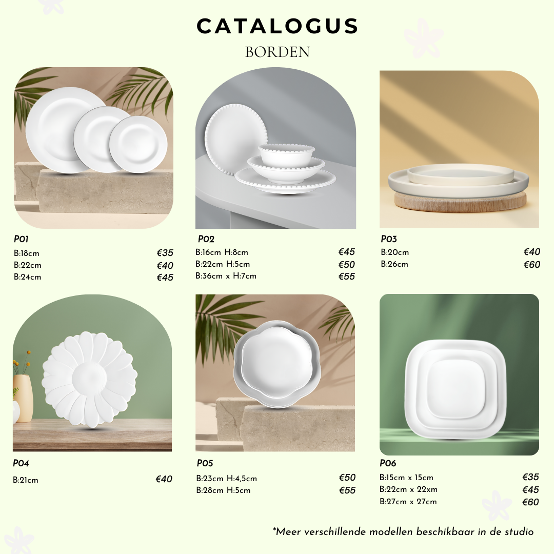 Kies uit meer dan 100 verschillende keramiekstukken en maak er iets unieks van met jouw eigen ontwerp. Je kunt ook alvast een kijkje nemen in onze catalogus voor inspiratie - Instructie