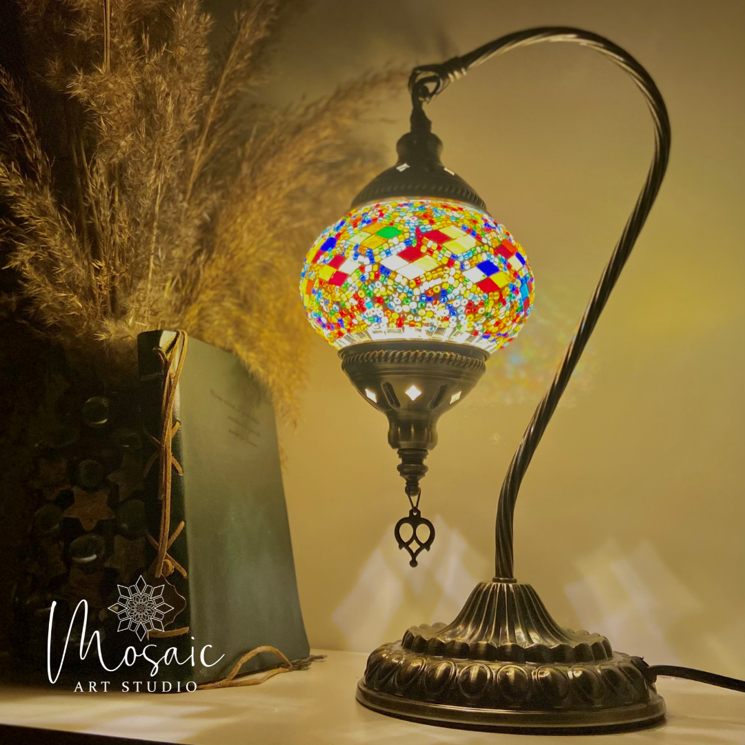 ''Kleurrijke Golven'' Handgemaakte Mozaïek Zwaan Lamp