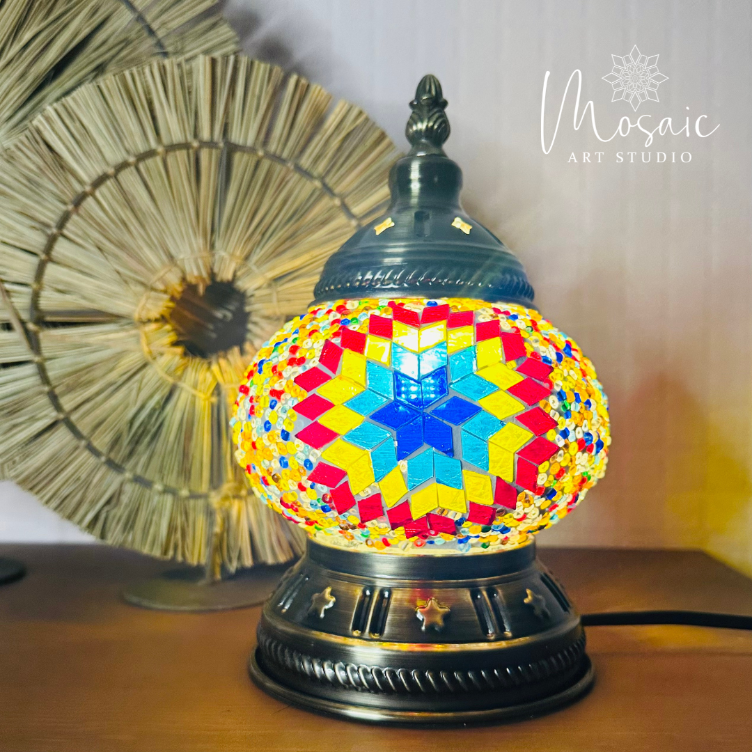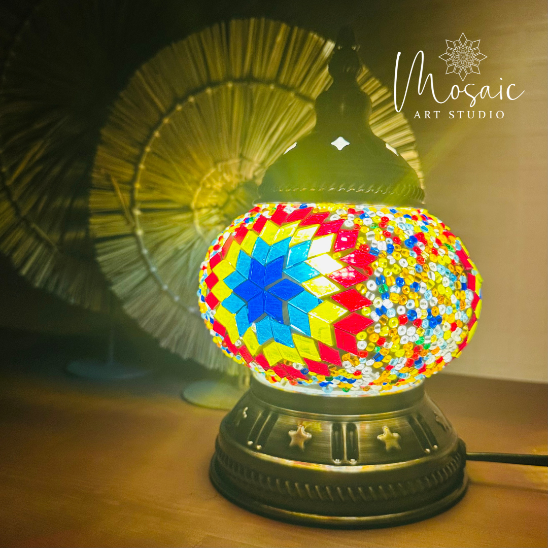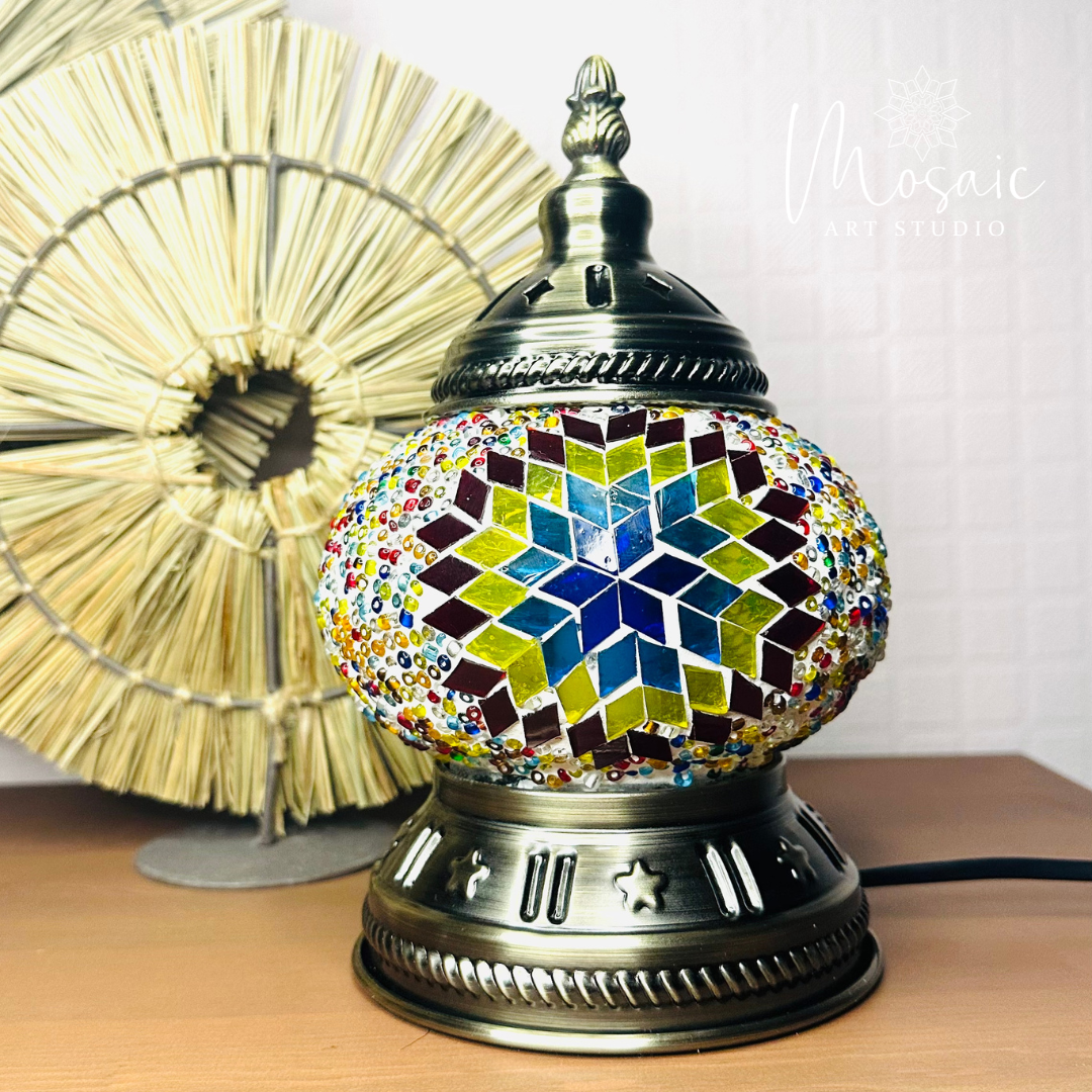 "Kleurrijke Ruitjes" Handgemaakte Mozaïek Mini Tafellamp