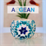 De Egeïsche Zee en de omliggende kuststreek waar verschillende tinten blauw en witte huizen komen bij elkaar, waren ooit de thuisbasis van de beroemdste Griekse mythen die in dit thema worden herinnert, terwijl je de natuurlijke kleurencombinaties van wit, licht en donkerblauw zult vinden.